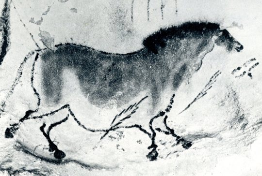 A beauitful horse, surrounded by arrows, in the Painted Gallery. (From Laming 1959, Plate 10)