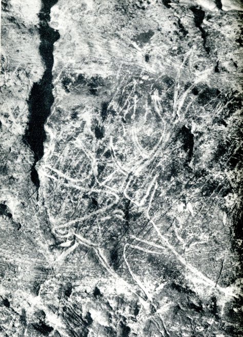 Look closely and you can see a stags head carefully engraved on the rock. (From Laming 1959, Plate 22)